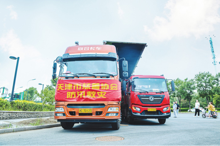 7月28日上午,董事長楊印江攜公司員工,趕往支援車輛現(xiàn)場,配合天津慈善協(xié)會進行物資配送及裝車工作。物資裝載完畢后,統(tǒng)一送往河南周口市災區(qū)。